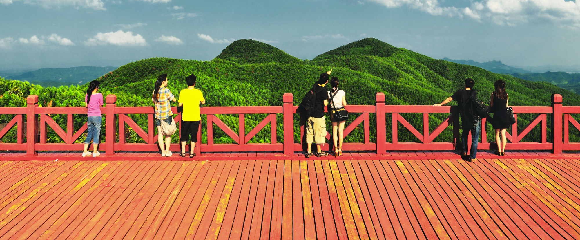 竹海覆盖两百多个大小山头,面积达16万亩,为我国最大的连片竹海,素有“亚洲大竹海”、“天然大氧吧”之称。耒水穿竹海而过,构成了翠竹与碧水相映成趣的绮丽景观。除了竹海旅游资源外,竹林中遍布泉水、洞穴,还有蔡伦古法造纸作坊、紫霞禅祠、大河滩古街、周家大屋、观海楼等珍贵历史人文景观,并有天然喷泉、石林水库、水晶石宝藏、古鱼化石遗址等自然景观,更有上堡水电站的高峡平湖美景。