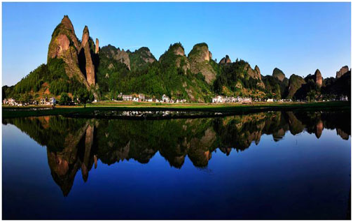 由丹霞地貌堆积、发育成的八角寨之高、天一巷之长、蜡烛峰之峭、红华赤壁之绝、将军石之俊、骆驼峰之优,加上葱郁茂密的深林植被、九曲萦绕、清澈见底的夫夷江,构成丹霞、绿水、青山相互衬托的美轮美奂的自然画卷,让来崀山旅游的游客赞叹不已、流连忘返。