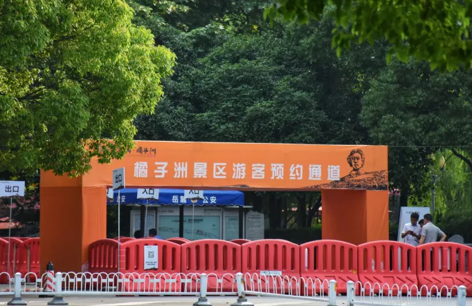 ▲“五一”假期,橘子洲景区设置游客预约通道。